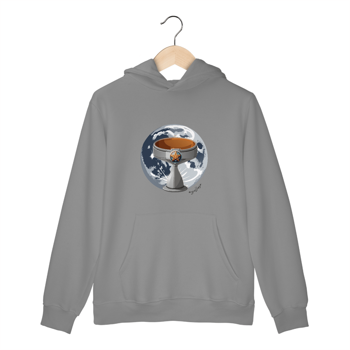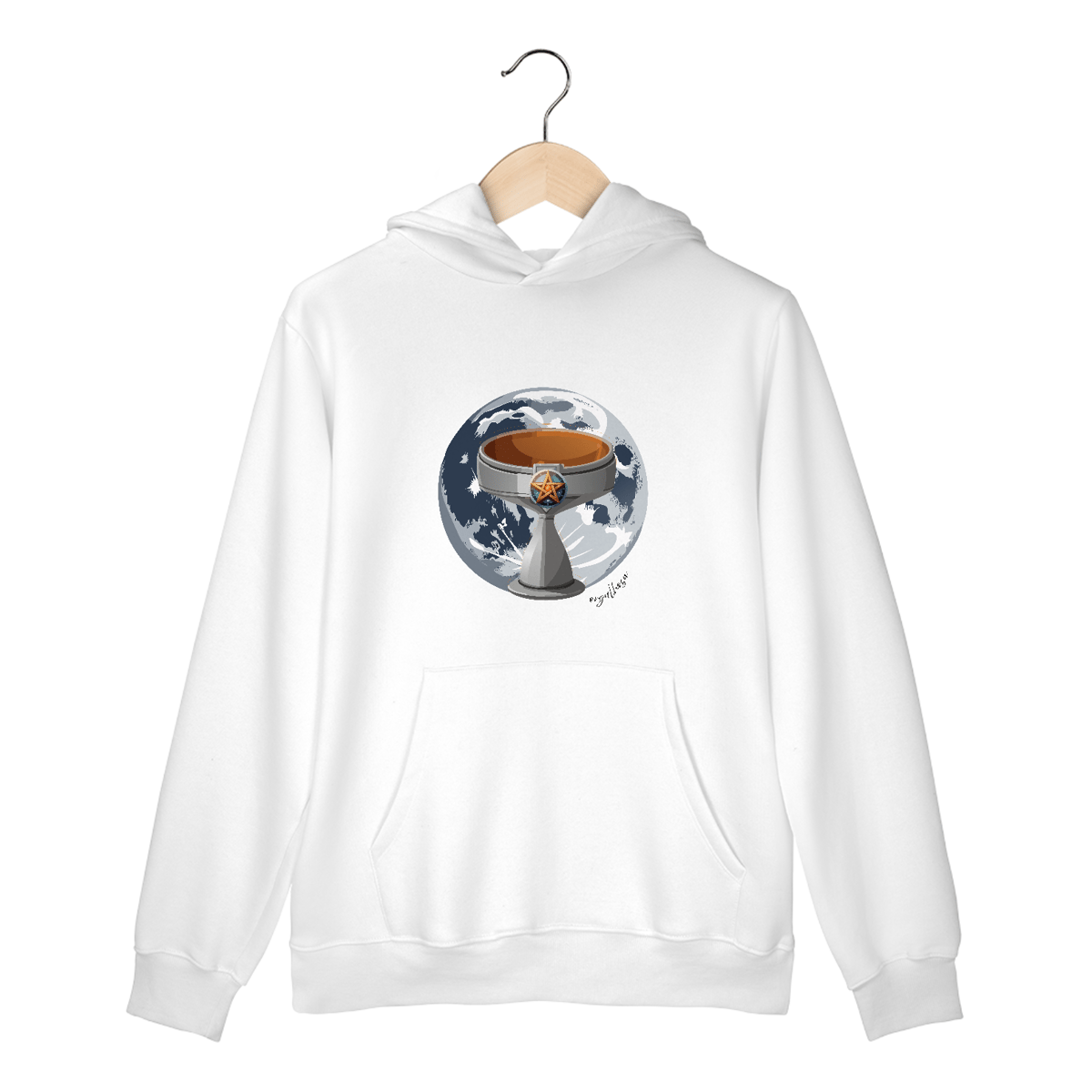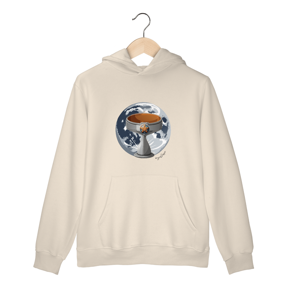 Conforto de moletom, presença de deusa — ideal pra invocar mistério, proteção e uma pitada de deboche sagrado.