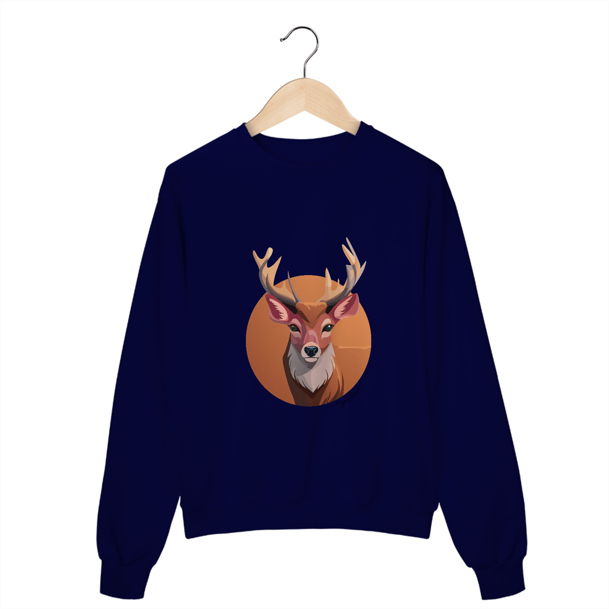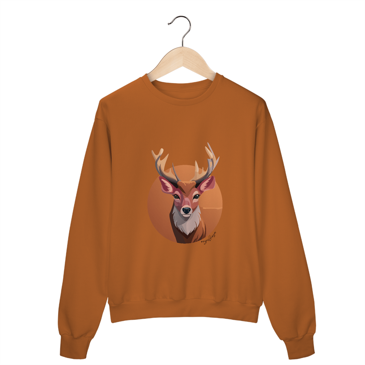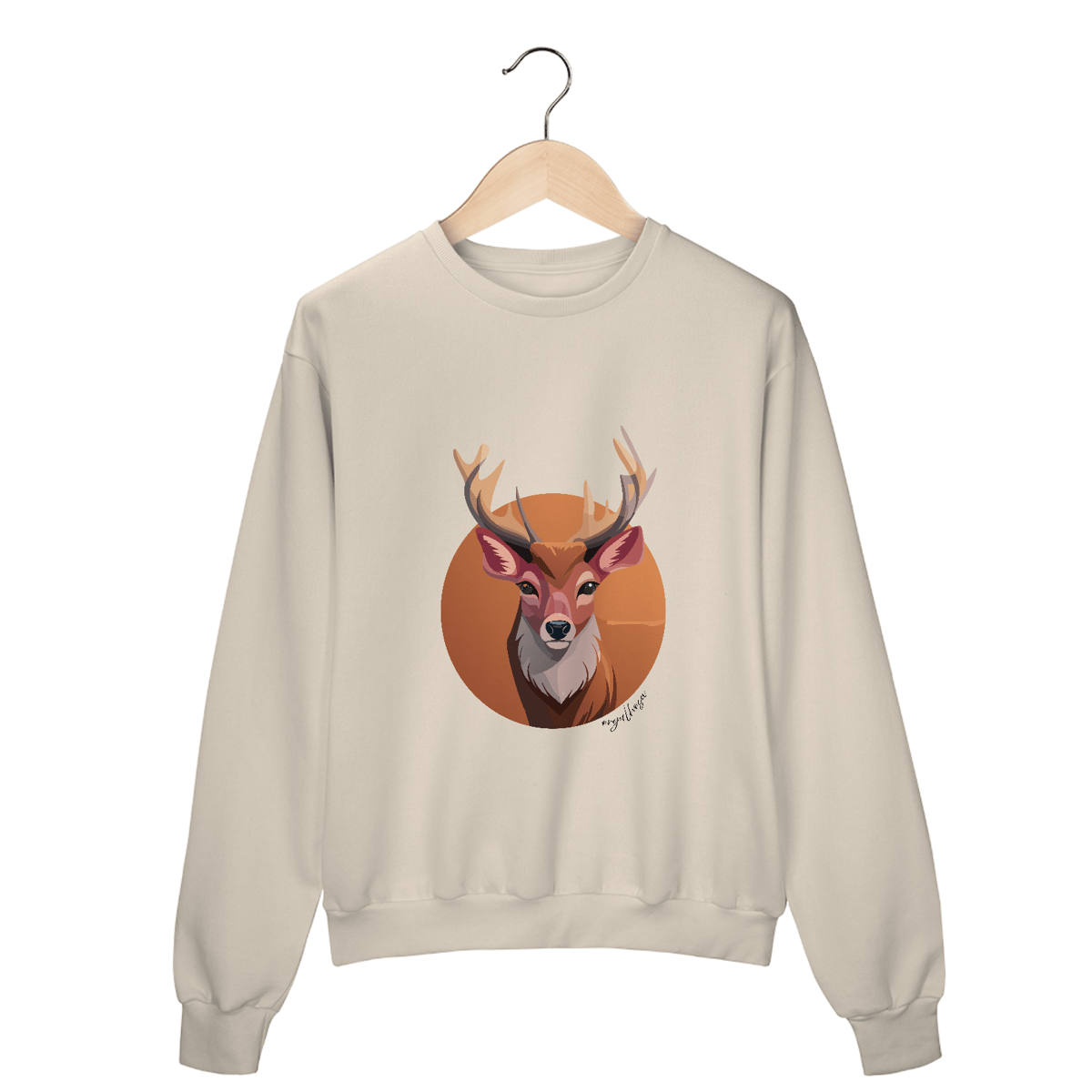 O cervo estampa seu peito como um totem de desejo, mistério e presença — solar, sensual e sagrado.